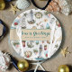 Your beach themed Christmas party will be a hit with these paper plates featuring a variety of nautical elements such as sailing ships, lighthouses, ship’s wheel, anchors, buoys, starfish and seashells, decorated with holiday sprigs of greenery, berries, poinsettia, and holly leaves. Add your own family name to personalize. You can also change the greeting message by clicking "Customize Further."