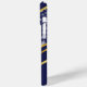 This personalized Christmas theme phone case features a navy blue and white snowflakes pattern decorated with golden yellow waves. The template makes it easy to type your name to create a unique accessory for a winter holidays season.