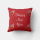 Fun - whimsicle Christmas & New Years Reversible throw pillow inred. One side's wording in white sats "Merry Merry Christmas and the other says "Happy New Year" with cofetti and party horns. Cover two holidays in one.