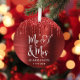 Christmas Newlywed Red Glitter Photo Metal Ornament