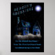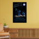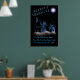 Change the 3 lines of default text w/ your own personal message at bottom of this door-sized poster & you've got a beautiful, unique gift for your customers, friends & family that will be brought out year after year. The image is an original digital painting by Leslie Sigal Javorek, of a clear dark night sky filled w/ stars & a glowing full moon over a mystical Tudor home, windows aglow w/ candlelight; blanketed w/ snow or floating on a cloud?