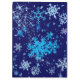 Deep blue Christmas night and heavy snowfall. Beautiful snowflakes large and small. Merry Christmas and Happy New Year! Let your best wishes come true! Let the health, love, and prosperity be with you! Vertical or portrait oriented products and souvenirs.
