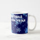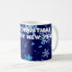 Deep blue Christmas night and heavy snowfall. Beautiful snowflakes large and small. Merry Christmas and Happy New Year! Let your best wishes come true! Let the health, love, and prosperity be with you! Coffee mug. You can change or delete the template text Merry Christmas And Happy New Year