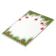 Notepad shown in white with a festive holiday red ornaments and fir garland frame print.