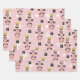 Christmas Nutcracker Figures Hand Drawn Pink Wrapping Paper Sheets