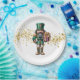 This paper plate is shown with a festive Christmas holiday nutcracker print.