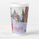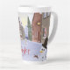 Beautiful Bavarian Christmas Village with a red Nutcracker is beautiful with your personalized name or message. Folk-art German town is versatile for company holiday gifts. Tall coffee cup with personalized name or Christmas message is fun gift for kids, friends, and family.