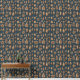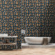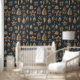 The ‘Christmas on the Wall’ wallpaper evokes a festive atmosphere perfect for the holiday season. With a dark red background and golden decorations.
