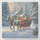 Santa driving a one-horse sleigh to deliver Christmas presents in a small town