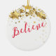 This Christmas ceramic ornament is shown with a holiday believe stars print.