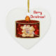Christmas Ornament candle burning with two teddy bears giving gifts