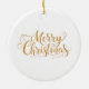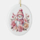 This ceramic Christmas ornament is shown with a cute festive snowman art print.