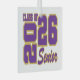 This glass ornament is shown in a square size with a fun print which you can personalize to your class colors. Shown in white, royal purple and gold. Customize this item with this template or buy as shown.