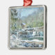 Christmas ornament featuring a snowy-frosty day at Glade Creek Mill, Babcock State Park located in West Virginia.