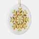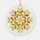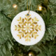 This ceramic Christmas ornament is shown here with a festive holiday gold snowflake print.
