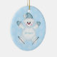 This ceramic Christmas ornament is shown here with a holiday snowman print.