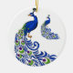 Christmas Ornament shown in a round shape with a white background with a pretty peacocks print.