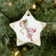 Christmas Ornament shown in a star shape with a white background with a cute holiday santa mouse print, backside is a red color.