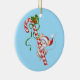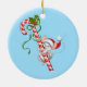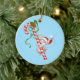 Christmas Ornament shown in a round shape with a blue background with a cute holiday santa mouse print.