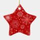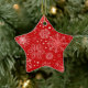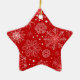 Star ornament shown in a festive red and white snowflakes print.