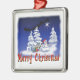 Snow man ornament Christmas ornament with santa flying with reindeer and cartoon snowman saying merry christmas