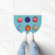 Christmas Ornaments bright colors funky designs half circle doormat. A fun and funky Christmas doormat that will bring an instant casualness to your kitchen, front door, entryway or any other place you'd like it. Fun vibes with bright colors and cool designs. Purples, sage green, red, yellow, shades of orange -- so many colors in one design.