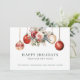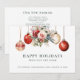 Christmas Ornaments Holiday Floral New Home Announcement Flat Card with Envelope... Are you moving during the Christmas holiday season? The front of our holiday new address card features an exquisite watercolor floral bouquet and red Christmas ornaments above your change of address info. Example text on front of the card reads: "Happy Holidays from our new home" along with your name and new address just beneath. On the back is example wording for all the information your family and friends will need to stay in touch and a Christmas greeting you can keep or update with your own words. All text can be revised very easily using the Personalization template.