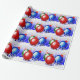 This image portrays Christmas balls in red, blue and green. Ribbons and stars in white, blue and red are seen throughout. A blue backround was added. A glitter was added to this design. This image was tiled. This Christmas wrapping paper is available in assorted styles and sizes.