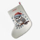Perfect! Exactly what I ordered! I uploaded a picture of my blue chow, and the screen print was incredible. the back side of the stocking was the red and black checkered print. my puppy's name was also printed on the cuff of the stocking. PERFECT! Highly recommend this product! My puppy's name was screen printed onto the cuff of the stocking, the font was perfect!