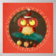 Cute Christmas owl sitting on branch of Christmas tree. It has Santa Claus hat and it is absolutely in holiday spirit. Surrounded by Christmas decorations and like every Santa Claus making 'Ho Ho Ho'. Happy Holidays!