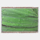 Fresh is the word, with spring showers on a spring green palm frond in the original photograph by ZoeSPEAK on this Throw Blanket. The photo is a closeup, showing the water droplets and details of the leaf after the sun has come out. The adonidia palm is often called Christmas palm because as it matures, the tree will bloom with white flowers and then red berries (seeds) around Christmastime.