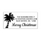 This personalized, fun tropical Christmas return address rubber stamp has a silhouette of a coconut palm tree with string lights wrapped around the trunk.