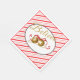 This paper napkin is shown in White with a festive Christmas bells print on a candy cane stripes background.