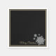 These standard style napkins are shown in the cocktail size. Shown with snowflakes in lower corner and the phrase "Merry Christmas" on a black background, a thin Champagne border with white outer border edges. Text in Champagne.