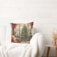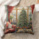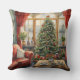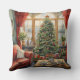 Christmas Parlor Window Tree Red Throw Pillow