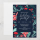 Christmas Party Blue Botanical Red Floral Invitation