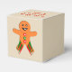 This awesome favor box features a cute cartoon of a colorful gingerbread man. he has red and green buttons, a big smile on his face and red and green tassels around his legs ready for a Christmas party. There is customizable text on the top lid so it can be personalized with the name of the recipient.