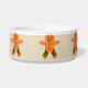 This awesome pet bowl features a cute cartoon of a colorful gingerbread man. he has red and green buttons, a big smile on his face and red and green tassels around his legs ready for a Christmas party.