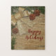 Christmas Party Golden Green Leaves Red Rustic Jigsaw Puzzle
