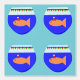 This awesome patterned wallpaper features a fun orange Christmas goldfish wearing a festive santa hat. The goldfish is swimming in the blue water of its goldfish bowl. The fish has decorated the top of the bowl with red and green bunting flags that spell out the message "Merry Fishmas". This fun seasonal fish is ready for a big Christmas party.