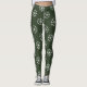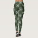 Funny Ugly Christmas leggings with snowflake pattern. Fun Holiday pattern design pants. Cute clothing for women and girls. Personalizable tights with custom background color iedark green. Make your own custom printed pants for the Holiday season. Humorous costume outfit idea for Santa's little helper or elf. Match with your favorite ugly x-mas sweater.
