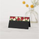 This folded name place card is shown in black with a festive Christmas red rose garland.