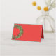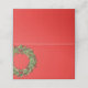 This folded name place card is shown in a red color with a festive Christmas wreath graphic print.