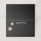This folded name place card is shown with a black background color with a festive gold crystal snowflakes graphic print.