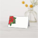 This folded name place card is shown in white with a festive Christmas red poinsettia flower.