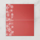 This folded name place card is shown with a red background color with a festive snowflakes graphic print.