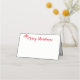 This folded name place card is shown in basic white with a festive Merry Christmas greeting with Santa hat graphic print.