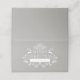 This folded name place card is shown in a Silver-Gray color with a White festive, yet classic, Merry Christmas graphic print or deer, bells holly and flourish. Space to handwrite each name personally.