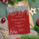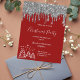 Christmas party red glitter silver invitation postcard