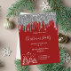 Classic red background, with faux silver glitter drips and white winter Christmas trees as decor. With the text: Christmas Party written with modern and trendy large hand lettered style script. Personalize and add your party information.